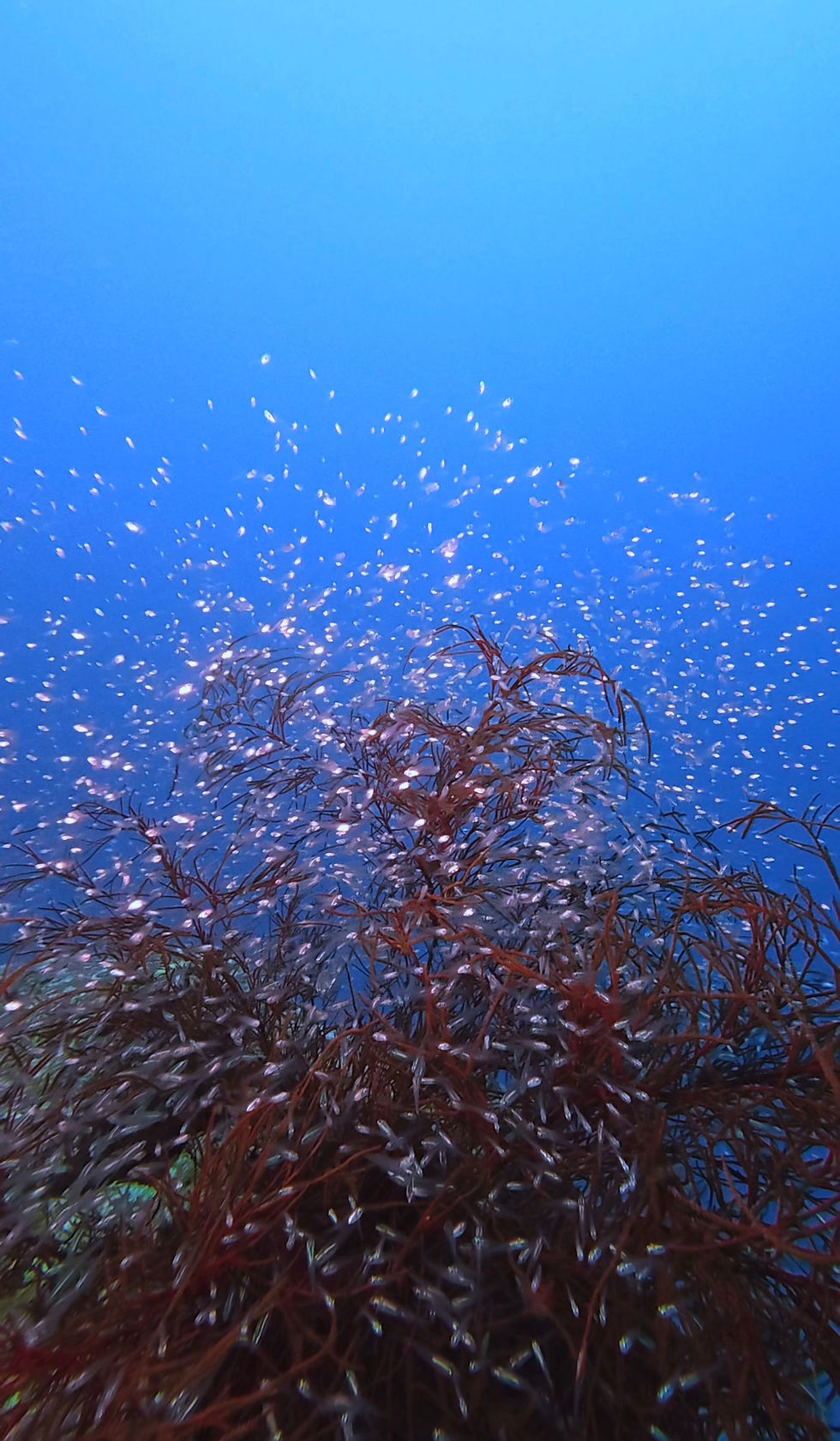 根の周りにはスカシテンジクダイがきらきらと群れ、